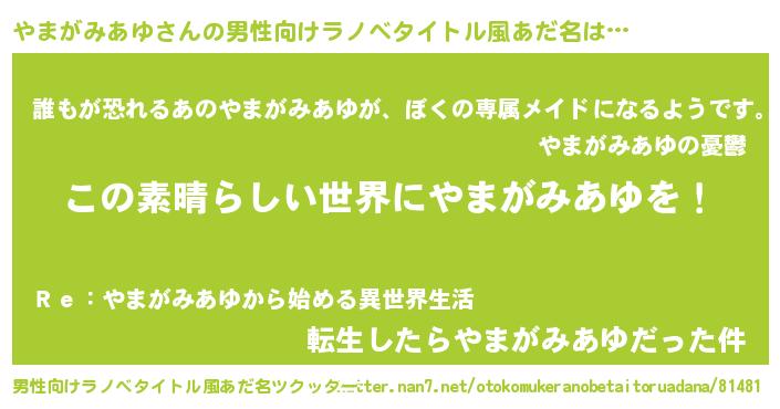 | 伝説のあだ名 | 『古より伝わる吟遊詩人やまがみあゆ』 |