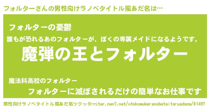 | 意味不明あだ名 | 『住所不定無職フォルター(40歳)』 |
