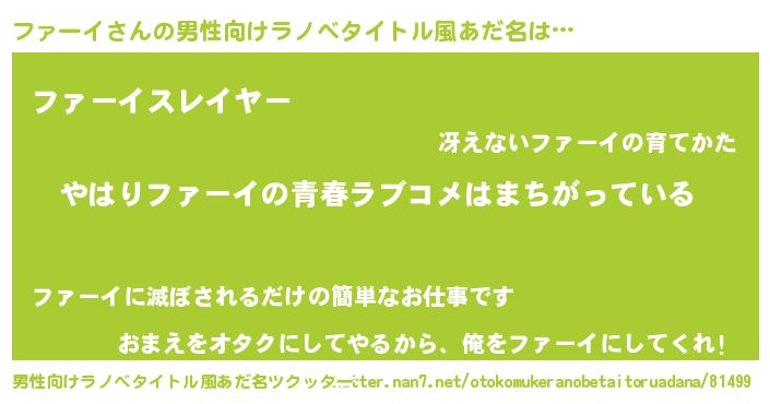ファーイさんの男性向けラノベタイトル風あだ名をツクッター!