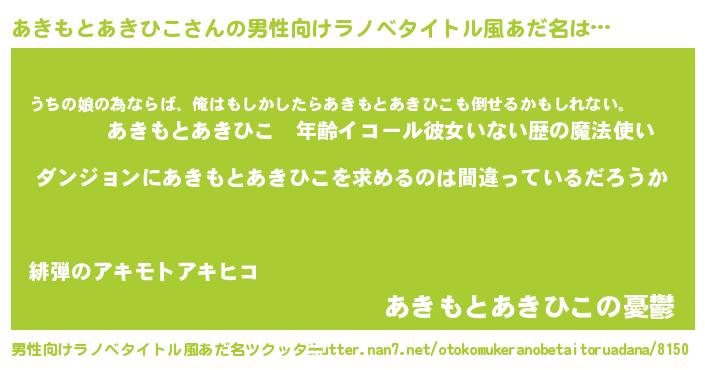 | 女子向けラノベタイトル風あだ名 | 『あきもとあきひこは平凡を望む』 |