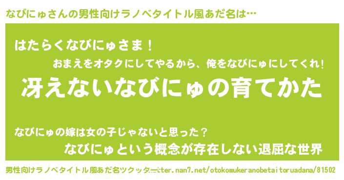 | 胡散臭い通販商品みたいなあだ名 | 『来世でも幸せになれる健康食品…その名も「なびにゅ」』 |