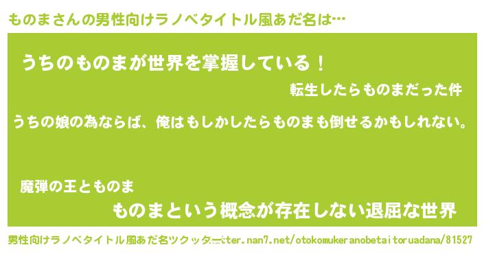 | 女子向けラノベタイトル風あだ名 | 『ものま伯爵の花嫁』 |