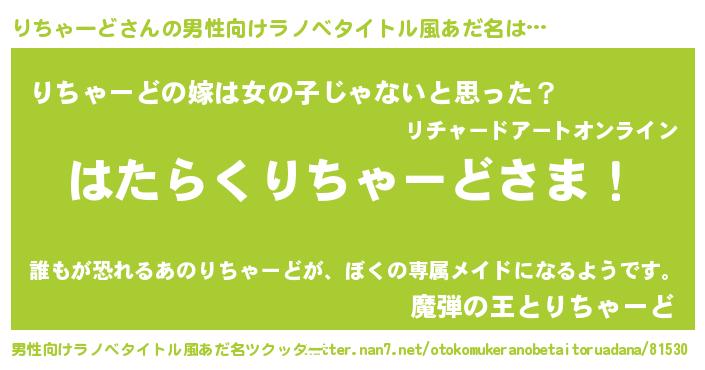 | 胡散臭い通販商品みたいなあだ名 | 『信頼と実績のネックレス…その名も「りちゃーど」』 |