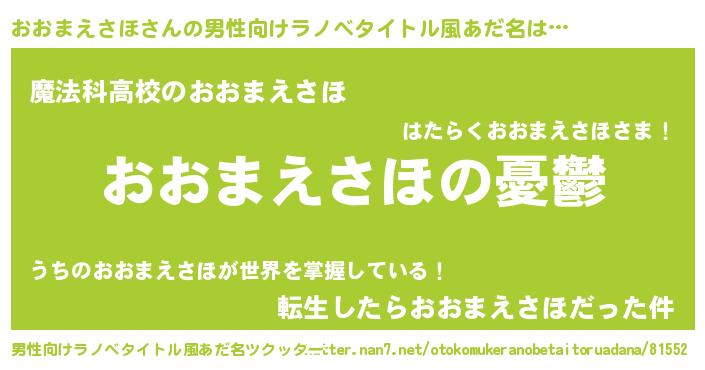 おおまえさほさんの男性向けラノベタイトル風あだ名をツクッター!