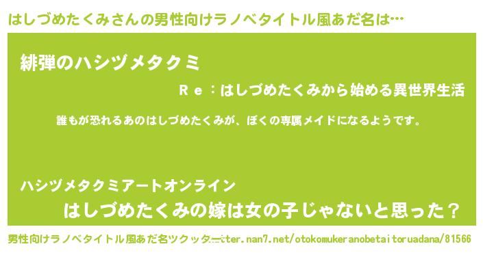 | 意味不明あだ名 | 『永久保存はしづめたくみ』 |