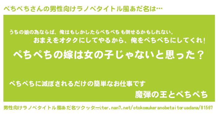 | 胡散臭い通販商品みたいなあだ名 | 『全米が絶賛したサプリメント…その名も「ぺちぺち」』 |