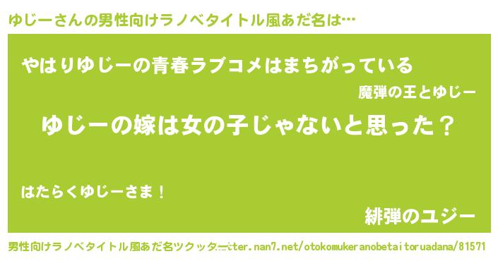 | 女子向けラノベタイトル風あだ名 | 『ゆじー様がみてる』 |