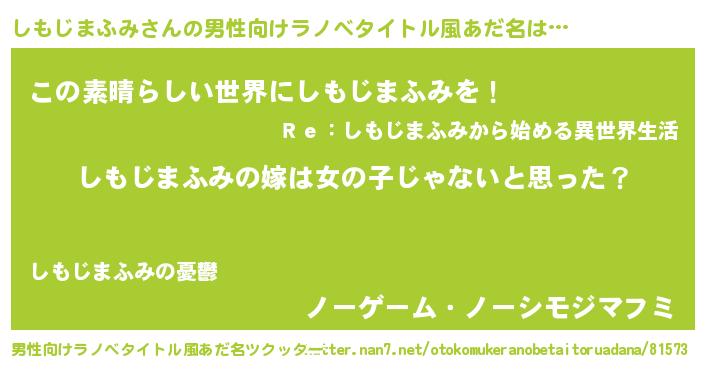 | 女子向けラノベタイトル風あだ名 | 『しもじまふみの卵を拾いまして』 |
