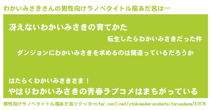 | 胡散臭い通販商品みたいなあだ名 | 『信頼と実績のネックレス…その名も「わかいみさき」』 |