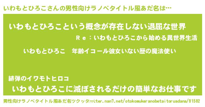 | 女子向けラノベタイトル風あだ名 | 『いわもとひろこの玉の輿計画!』 |