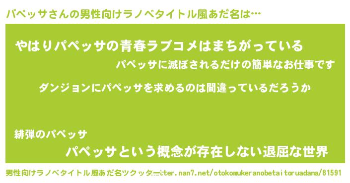 | 女子向けラノベタイトル風あだ名 | 『パペッサは平凡を望む』 |