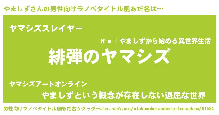 | 胡散臭い通販商品みたいなあだ名 | 『絶対に幸福をもたらす水素水…その名も「やましず」』 |