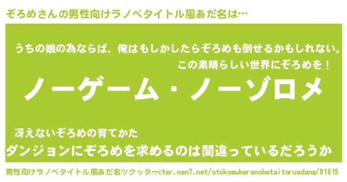 | 女子向けラノベタイトル風あだ名 | 『ぞろめ恋絵巻』『ぞろめ伯爵の花嫁』 |