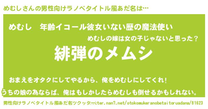 | 女子向けラノベタイトル風あだ名 | 『シンデレラめむし家の靴箱館』 |