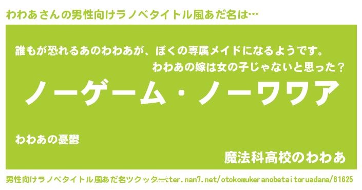 | 女子向けラノベタイトル風あだ名 | 『死神わわあの再婚』『わわあの契約王妃』 |