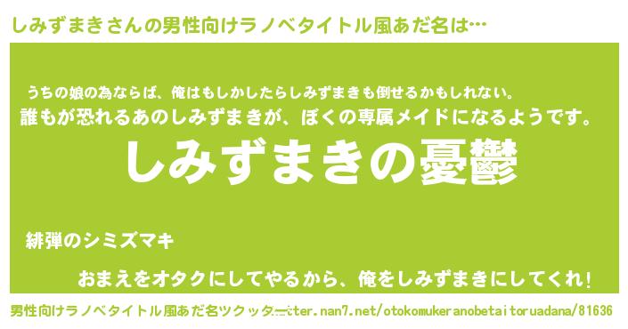 | 胡散臭い通販商品みたいなあだ名 | 『必ず成功する霊験あらたかなお札…その名も「しみずまき」』 |
