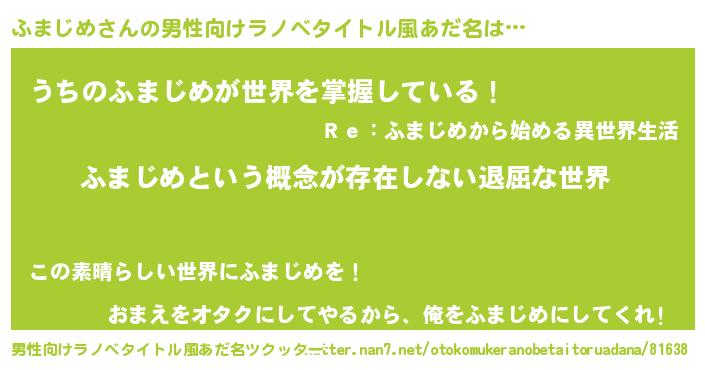 | 女子向けラノベタイトル風あだ名 | 『ふまじめの契約王妃』『ふまじめ恋絵巻』 |