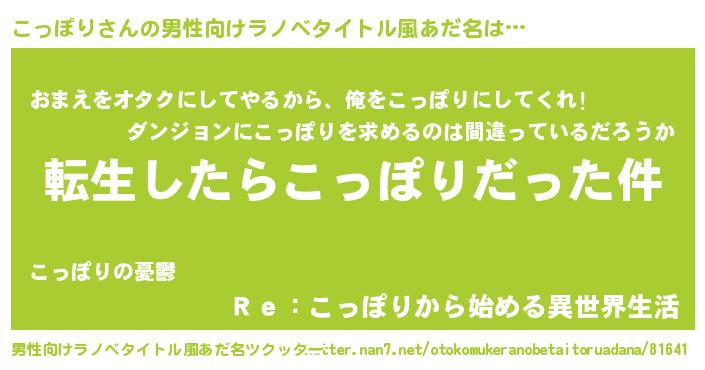 | 意味不明あだ名 | 『なめこ科こっぽり属』『自称こっぽり』 |