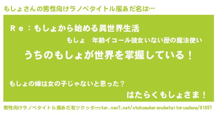 | 胡散臭い通販商品みたいなあだ名 | 『芸能人もオススメする高麗人参…その名も「もしょ」』 |