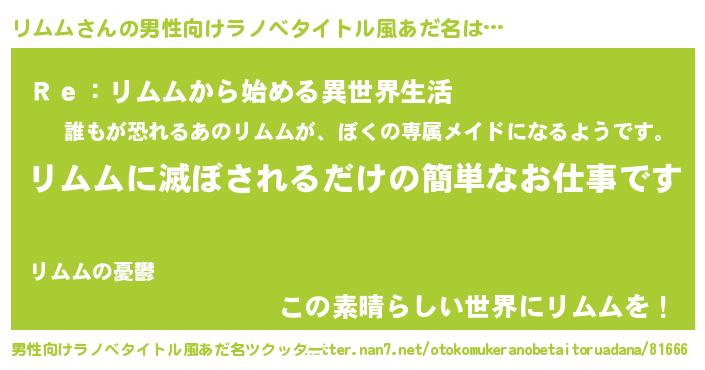 | ヘコむあだ名 | 『リムム(笑)』『リムもー』 |