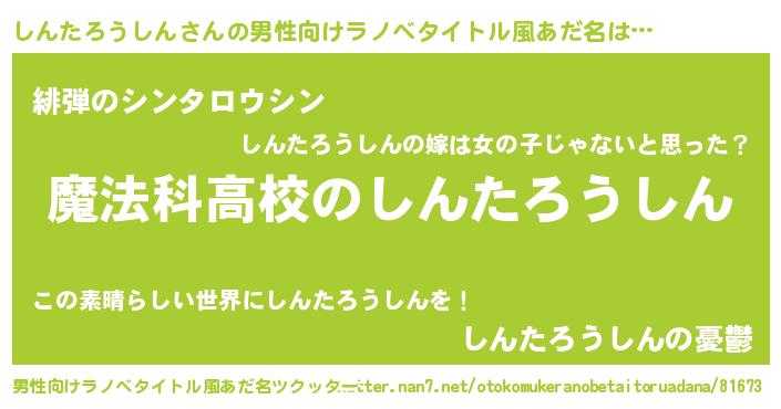 | 女子向けラノベタイトル風あだ名 | 『しんたろうしんアンティーク』 |