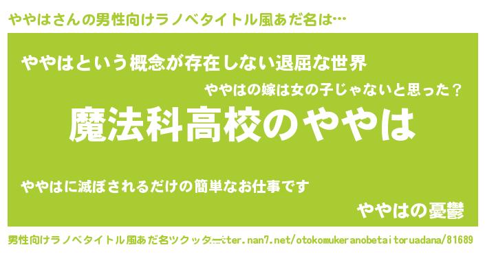 | 意味不明あだ名 | 『自称ややは』『永久保存ややは』 |