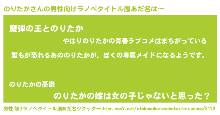 | 女子向けラノベタイトル風あだ名 | 『異世界でカフェのりたかを開店しました。』 |