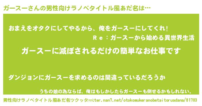 | ヒーロー風カッコイイあだ名 | 『慈愛の使者ガースー』『暗黒騎士ガー』 |