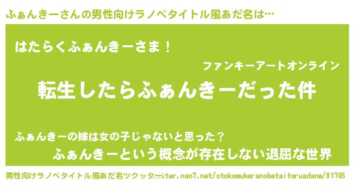 | ヘコむあだ名 | 『ふぁんきー(震え声)』『ふぁにー』 |