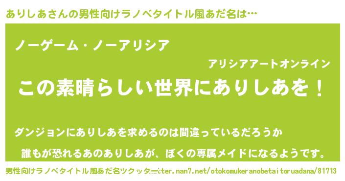 | ヒーロー風カッコイイあだ名 | 『仮面アリダー』『愛の使者ありしあ』 |