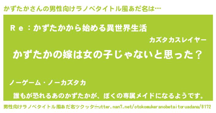 かずたかさんの男性向けラノベタイトル風あだ名をツクッター!