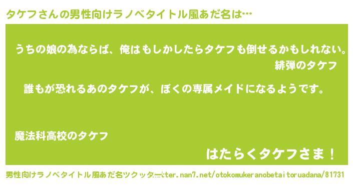 | ファンタジー風あだ名 | 『タケディッシュ』『エターナルタケフー』 |