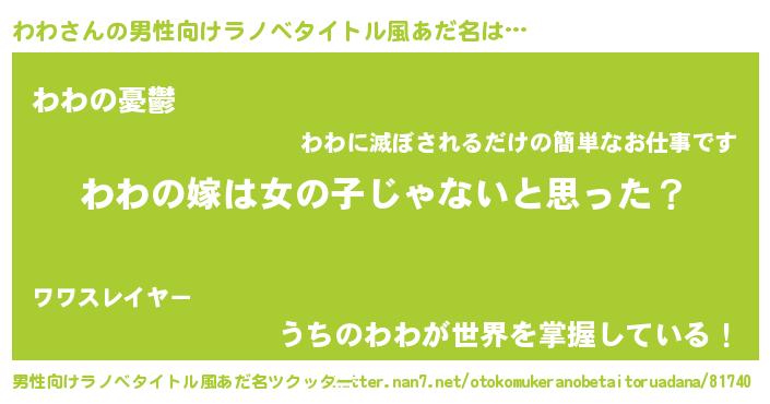 女子向けラノベタイトル風あだ名 | 『わわ様がみてる』『横柄わわと宰相陛下』 |