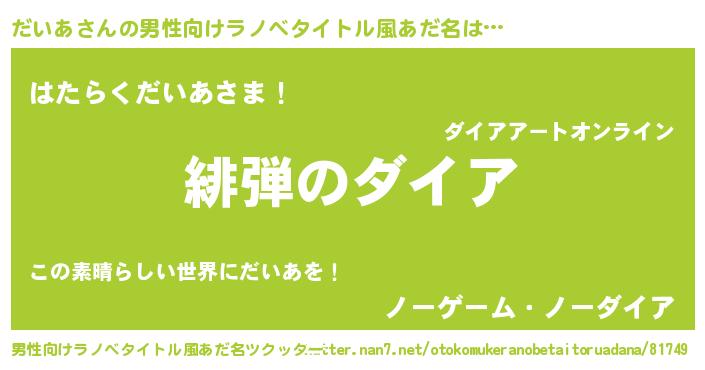 | ヒーロー風カッコイイあだ名 | 『正義の使者だいあ』『スーパーダイア』 |