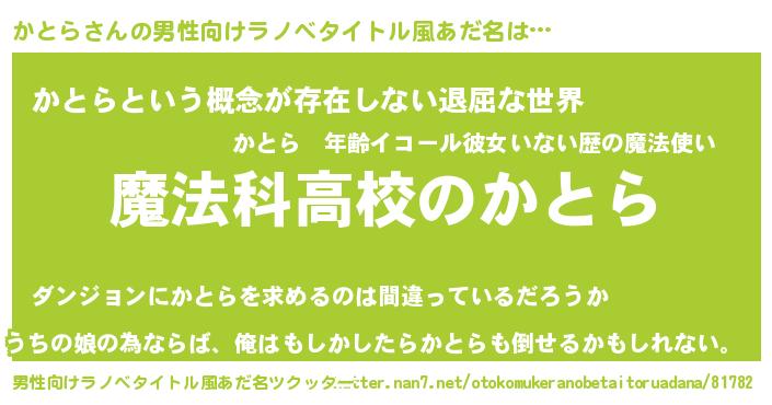 | 意味不明あだ名 | 『自称かとら』『永久保存かとら』 |