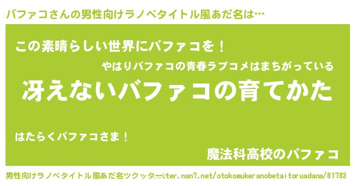 | 意味不明あだ名 | 『住所不定無職バファコ(56歳)』 |