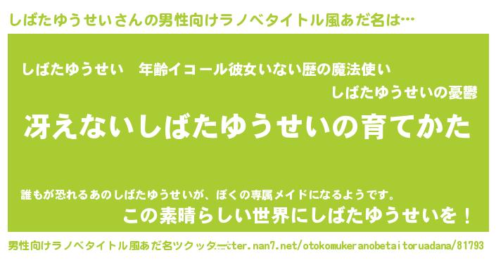 | ヒーロー風カッコイイあだ名 | 『仮面シバダー』『ネオシバタユウセイ』 |
