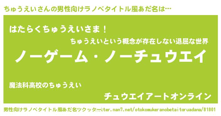 | 肩書あだ名 | 『ちゅうえい助手』『ちゅうえい社長』 |