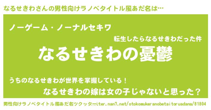 | ヒーロー風カッコイイあだ名 | 『スーパーナルセキワ』『暗黒騎士ナル』 |
