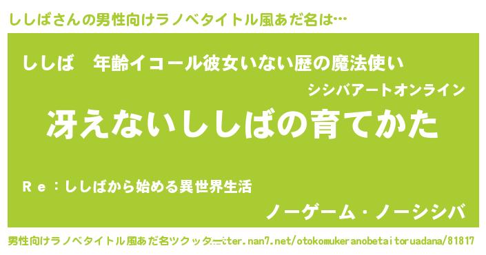 | ヘコむあだ名 | 『ししにー』『ししば(笑)』『ししを』 |