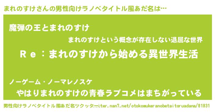 | 女子向けラノベタイトル風あだ名 | 『闇のまれのすけ』 |