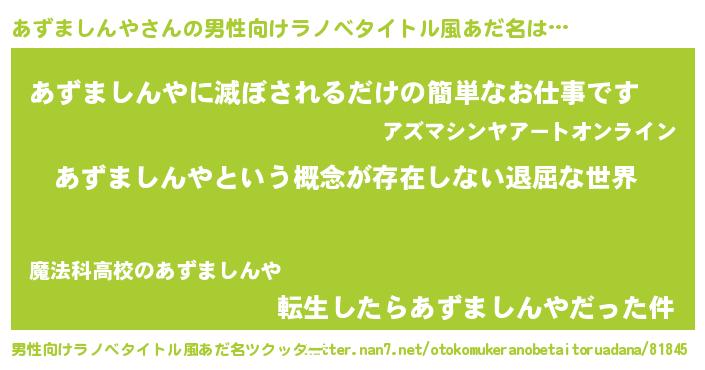 | 胡散臭い通販商品みたいなあだ名 | 『絶対に幸福をもたらす健康食品…その名も「あずましんや」』 |