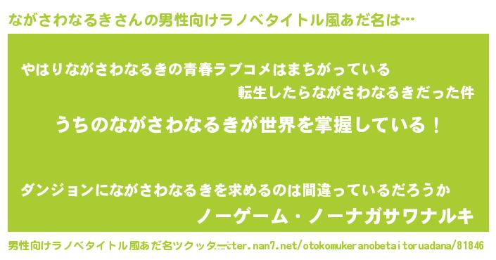 | 胡散臭い通販商品みたいなあだ名 | 『運命の人と巡り会える高級そうな壺…その名も「ながさわなるき」』 |