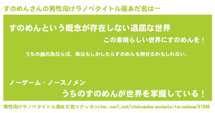 | 女子向けラノベタイトル風あだ名 | 『すのめん伯爵の花嫁』『すのめん恋絵巻』 |