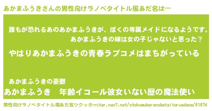 | ファンタジー風あだ名 | 『エターナルアカマフウキー』 |