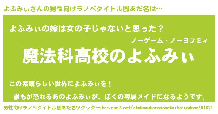 | 意味不明あだ名 | 『自称よふみぃ』『永久保存よふみぃ』 |