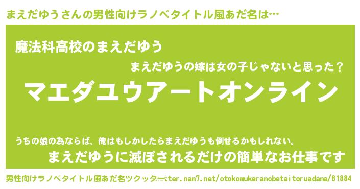 | 胡散臭い通販商品みたいなあだ名 | 『モテモテ間違いなしブレスレット…その名も「まえだゆう」』 |