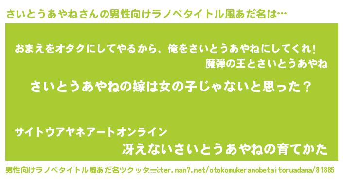 | 胡散臭い通販商品みたいなあだ名 | 『全米が絶賛したサプリメント…その名も「さいとうあやね」』 |
