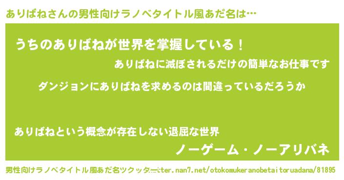 | 伝説のあだ名 | 『解き放たれた遊び人ありばね』 |