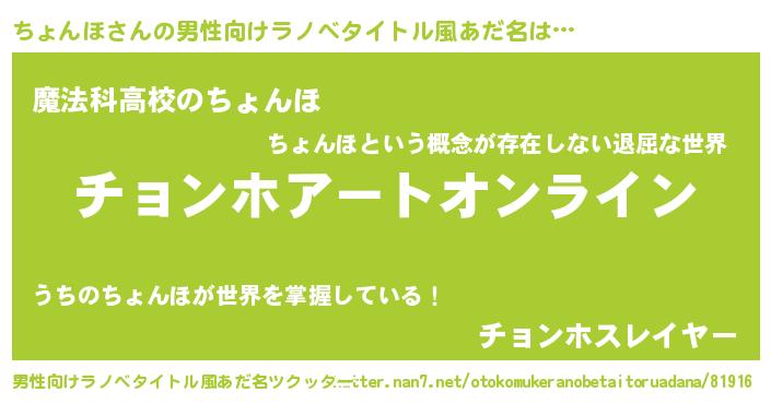 | 女子向けラノベタイトル風あだ名 | 『ちょんほ姫と円卓の騎士』 |